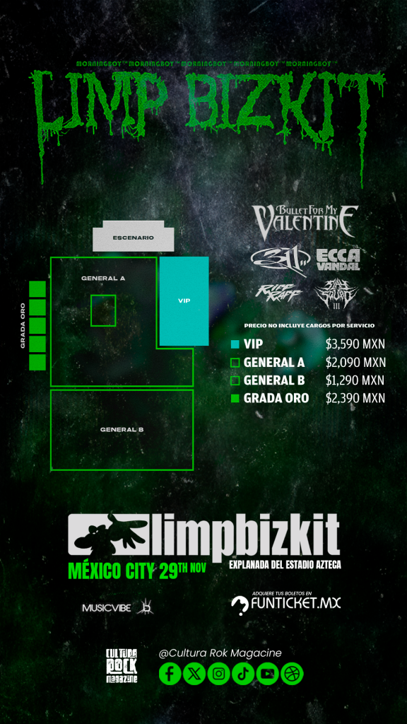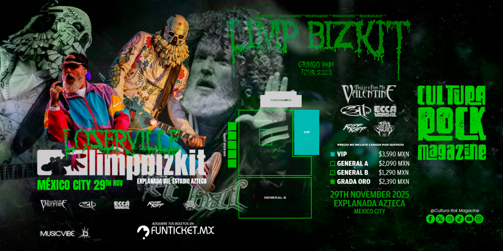 Ciudad de México — La espera terminó. Este 29 de noviembre de 2025, la Explanada del Estadio Azteca recibirá a Limp Bizkit, una de las bandas más influyentes del nu metal, quienes llegarán a la CDMX con su explosivo Gringo Papi Tour 2025.